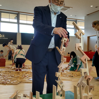 初日は、宮田秀利塙町長と秦公男教育長が来場され、木のおもちゃを実際手に取り、遊んでいただきました。